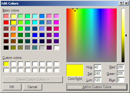 Derrière les guillemets vous introduisez p.ex. "C:\Program Files\ADP Dealer Services\EVA B 2006B\Eva.exe" /bg:(255,255,0)